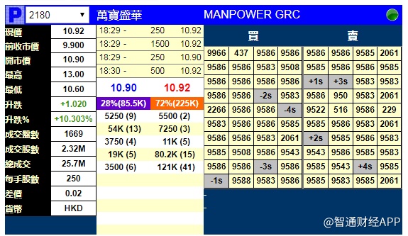 智通财经APP获悉,万宝盛华(02180)将于7月10日挂牌,上市前夕,辉立证券暗盘交易显示其收报10.92港元,较招股价9.9港元,涨10.303%。每手250股,不计手续费,每手赚255港元。