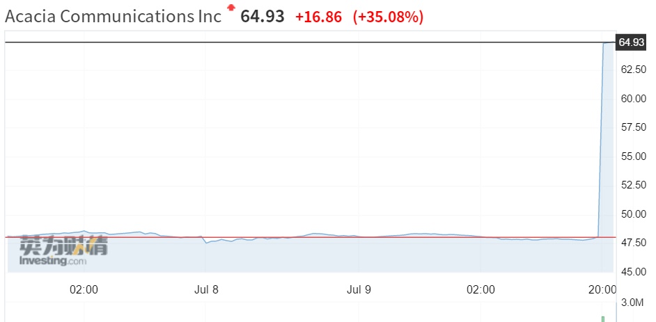 截至发稿,Acacia大涨35.08%,报64.93美元。