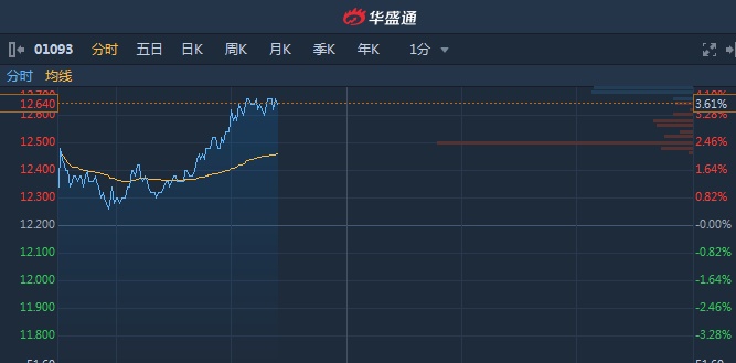 智通财经APP获悉,交银国际指,医药行业创新趋势愈发明显,首推买入石药集团(01093),截至11时23分,涨3.61%,报价12.64港元,成交额1.393亿。