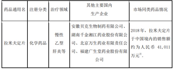 从公告给出的数据,2018年,GSK(苏州)拉米夫定片(规格:0.1g)在中国境内的销售额约为4.22亿元。尽管就拉米夫定销量而言,已经不复当年之勇,但其在该治疗领域仍旧占据着半壁江山,因为市场如安徽贝克生物、湖南千金湘江药业、北京万生药业、福建广生堂等所有同类竞品在2019年的销售额总和约41011万元。