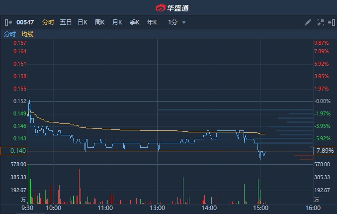 智通财经APP获悉,数字王国(00547)连续上攻后,今日显著走弱,尾盘更小幅跳水。截至15时4分,跌7.89%,报0.14港元,成交额达1453万港元。