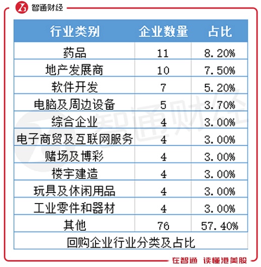从港交所的行业分类标准看,在今年上半年回购的133家企业里,涉及57个行业及细分领域。行业受政策影响从而使经营环境发生变化的企业则是回购的“主力军”。