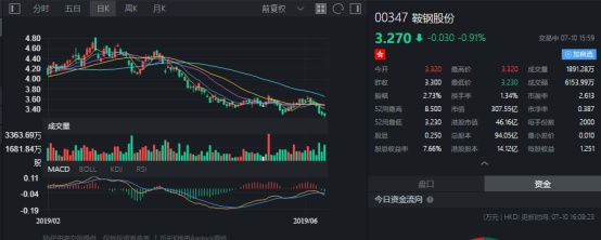 截至今日收盘,鞍钢股份(00347)跌0.91%,报3.27港元。