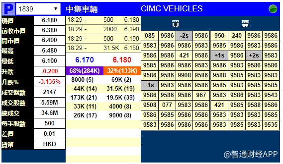 智通财经APP获悉,中集车辆(01839)将于7月11日挂牌,上市前夕,辉立证券暗盘交易显示其收报6.18港元,较招股价6.38港元,跌3.135%。每手500股,不计手续费,每手亏100港元。