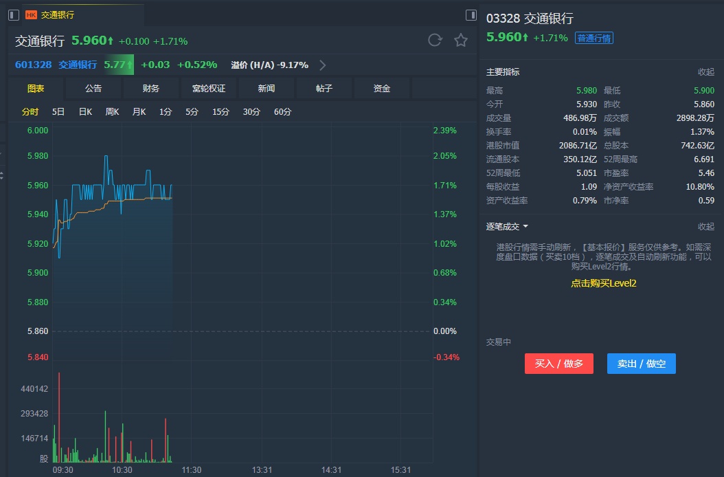 智通财经APP获悉,大和发表研究报告称,预计交通银行(03328)第二季净息差将录轻微按季上升,上半年拨备前利润增长料达双位数。不过,由于信贷成本较高,该行将公司2019-2020年每股盈利预测下调0.4%-1.6%,下调目标价由7港元至6.6港元,评级“跑赢大市”。
