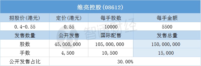 智通财经APP获悉,7月11日,维亮控股(08612)配售结束。配售招股价区间为0.4-0.55港元,最终定价0.55港元,每手5500港元。