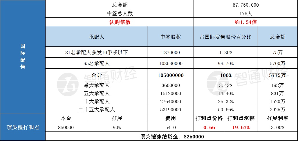 国际配售申购人数176人,认购倍数约为1.54倍。