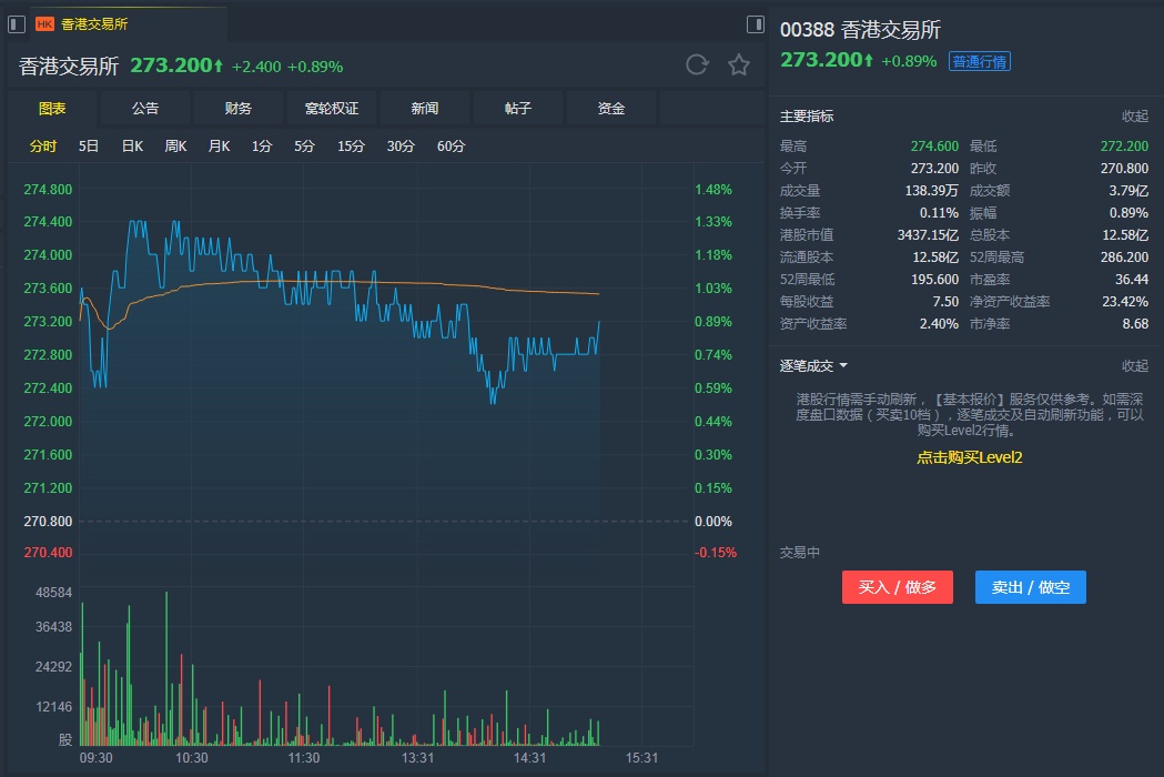 智通财经APP获悉,美银美林发表研究报告称,港交所(00388)次季收入令人失望,主要因为今年次季港股成交较预期淡静,按季跌8%,而日均成交由首季的1,010亿元降至950亿元,此外港交所首季投资收入强劲,预计相关收入会快速减少,将其2019年至2021年盈测下调于5%至9%,目标价降2%,由307港元降至302港元,重申“买入”评级,仍看好港交所中期增长以及在内地资本市场发展中所扮演的角色。