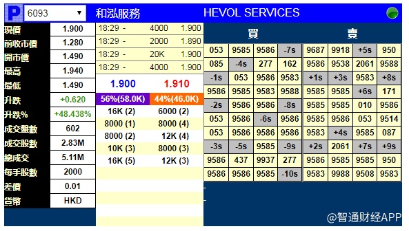 智通财经APP获悉,和泓服务(06093)将于7月12日挂牌,上市前夕,辉立证券暗盘交易显示其收报1.90港元,较招股价1.28港元,涨48.438%。每手2000股,不计手续费,每手赚1240港元。