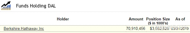 据智通财经APP了解,截至2019年一季度,伯克希尔持股达美超过7000万股,达美用业绩证明了巴菲特对航空股的信心。