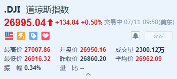 智通财经APP获悉,道指周四开盘涨近百点,盘中一度涨破27000点关口,刷新历史新高。截至发稿报26995.04,涨134.84点。