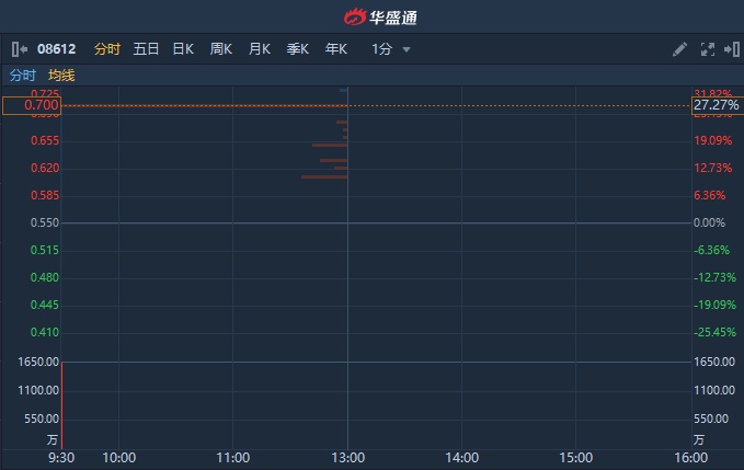 智通财经APP获悉,维亮控股(08612)首日挂牌,截至9时20分,涨27.27%,报价0.7港元,成交额2943万港元。