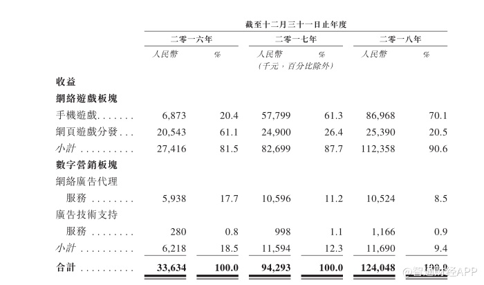值得一提的是,中至科技网络游戏版块的核心收益模式为房卡的代理与销售充值,根据招股书披露,2016年至2018年,于手机游戏中产生的收益占比分别为20.4%、61.3%、70.1%;于页面游戏中产生的收益占比为65%-75%。