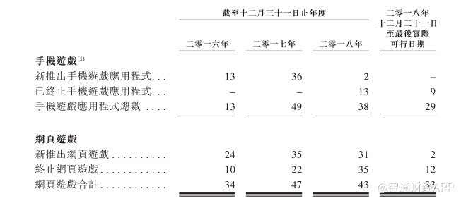 到了2018年,中至科技新推出的手机游戏应用程式仅为2款,被终止的手机游戏应用程序达13款,总数从207年的49款下降到38款。新推出的网页游戏应用程序减缓至31款,被终止的网页游戏应用程序高达35款,总数由2017年的47款下降到43款。截至2018年最后实际可行日期,中至科技的手机游戏应用程式继续减少到29款,网页游戏应用程序继续减少到33款。显然,中至科技的游戏的储备和发行正在走向下坡路,这也给它2019年的业绩的增速下滑留下伏笔。