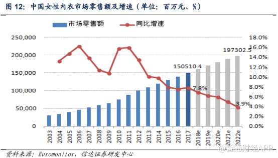 8.7%、47%、49.8%,而据信达证券的预测显示,中国女性市场零售额增速自2017年起将逐年放缓。
