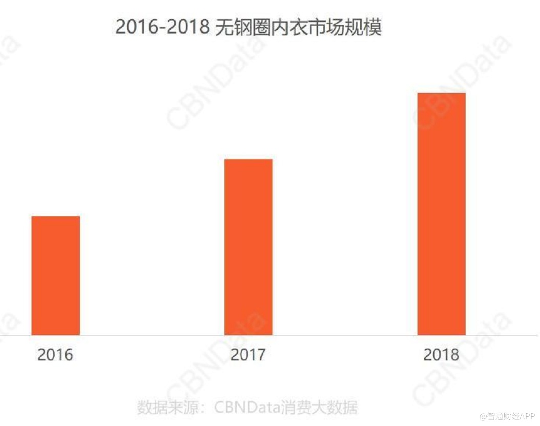 从行业趋势来看,传统内衣品牌正面临品牌升级挑战,企业纷纷向切细分人群,孵化年轻品牌转型。同时,需求变化也正搅动内衣市场长久不变的格局。例如,据CBNData消费大数据报告显示,无钢圈文胸市场规模在近年正保持稳定、突出的增长速度。