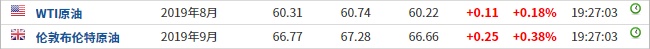 受热带风暴Barry影响,美国生产商削减了墨西哥湾逾一半的原油产量,再加上中东形势持续紧张,油价上涨。截止发稿,WTI原油涨0.18%,报60.31美元/桶。布伦特原油涨0.38%,报66.77美元/桶。
