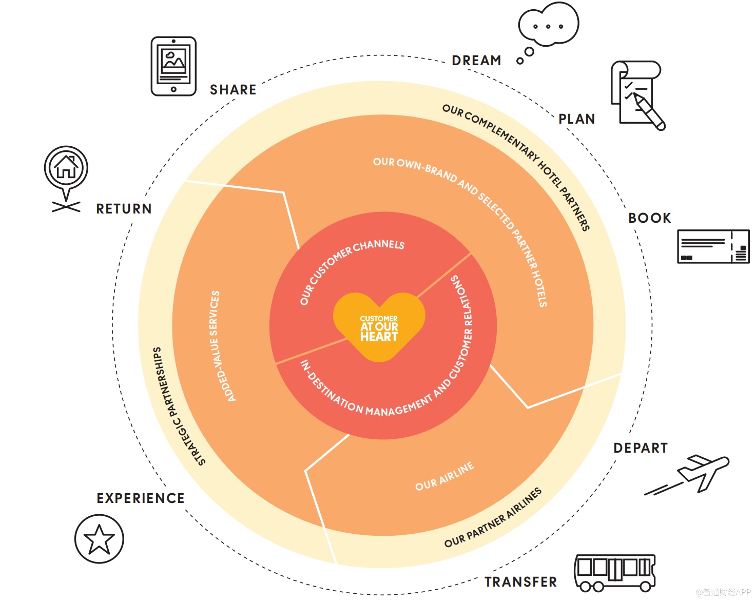 从上述的业务模式图来直观看待Thomas Cook,能联想到复星旅文的业务生态,但不同的是,Thomas Cook以普通客户为中心,而复星旅文更注重以家庭客户为中心,两者的业务互补性非常强。