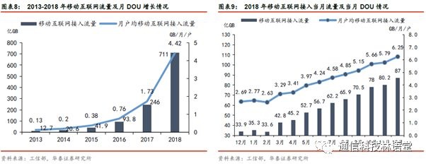 流量增长驱动4G网络扩容需求。从运营商招标来看,中国联通今年1月启动L900及L1800基站41.6万站无线网络整合项目集采,旨在推进 2/3G 减频退网,为4G 增加可用频谱资源,推进 L900 网络建设,解决4G深度和广度覆盖,并提升4G网络容量。根据工信部统计,2018 年度移动互联网累积流量达到711 亿GB,同比增长189.1%。全年移动互联网接入月户均流量(DOU)达4.42GB/月/户,是上年的2.6 倍;12 月当月DOU 高达6.25GB/月/户。在流量指数型增长,5G网络作为流量承载的主力军还为时尚早的背景下,4G网络投资扩容势在必行。