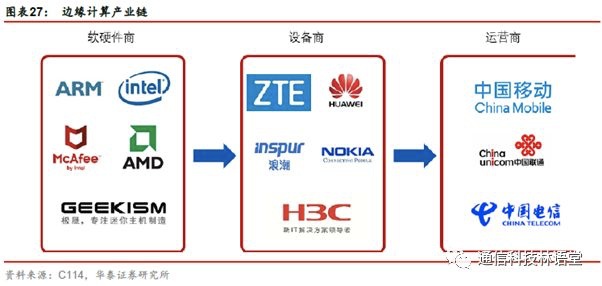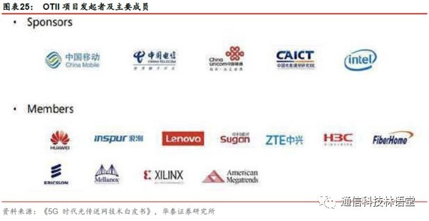 为了实现边缘计算,运营商联合产业力量成立OTII。2017年11月,中国移动联合中国电信、中国联通、中国信通院、英特尔等公司,在ODCC(Open Data Center Committee,开放数据中心委员会)共同发起了面向电信应用的开放电信IT基础设施项目——OTII(Open Telecom IT Infrastructure),该组织首要目标就是形成运营商行业面向电信及边缘计算应用的深度定制、开放标准、统一规范的服务器技术方案及原型产品。OTII项目成员不仅包括运营商,也包括中兴、华为、新华三、烽火、浪潮、联想等设备制造商。
