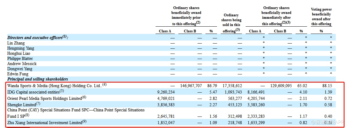 而此次IPO之后,万达文化产业集团持有万达体育的股权下降至65.02%,投票权为88.15%;投资机构和资本股东的股权则稀释至9.89%,其中IDG持股比例为4.1%,投票权为1.39%。
