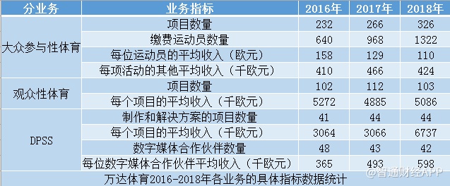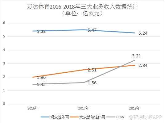 截至目前,万达体育已围绕收购的核心资产展开三大业务,大众参与性体育业务、观众性体育业务、以及DPSS(数字、生产、运动解决方案)业务。