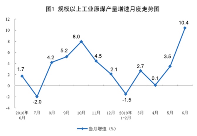 6月份,原煤产量3.3亿吨,同比增长10.4%,增速比上月加快6.9个百分点;日均产量1111万吨,比上月增加103万吨。上半年,原煤产量17.6亿吨,同比增长2.6%,比一季度加快2.2个百分点。