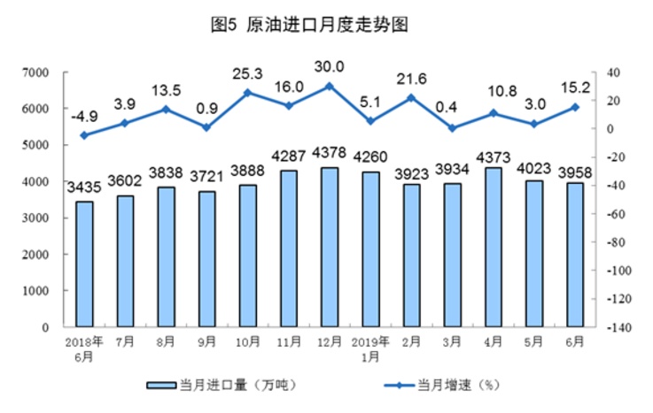 6月份,进口原油3958万吨,同比增长15.2%;上半年,进口原油2.45亿吨,同比增长8.8%,增速比一季度加快0.6个百分点。