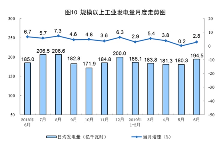 6月份,发电5834亿千瓦时,同比增长2.8%,增速比上月加快2.6个百分点;日均发电194.5亿千瓦时,比上月增加14.2亿千瓦时。上半年,发电3.4万亿千瓦时,增长3.3%,增速较一季度放缓0.9个百分点。