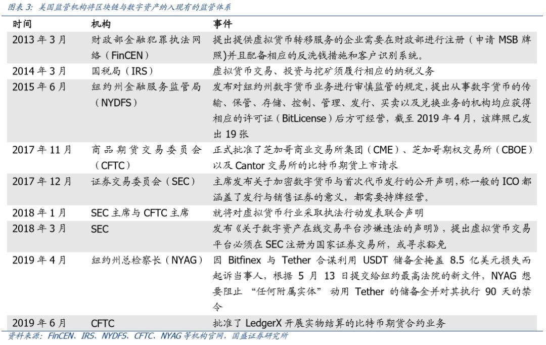 总体来看,美国监管体系对区块链及其数字资产的态度是尽量纳入现有的监管体系,对相关业务进行牌照制监管。