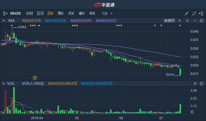 智通财经APP获悉,北方矿业(00433)全天低开低走,盘中一度创52周新低0.014港元。截至15时20分,跌21.05%,报0.015港元,成交额达207.8万港元。