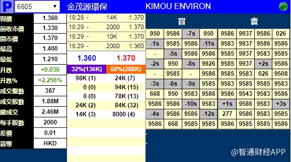 智通财经APP获悉,金茂源环保(06805)将于7月16日挂牌,上市前夕,辉立证券暗盘交易显示其收报1.36港元,较招股价1.33港元涨2.256%。每手2000股,不计手续费,每手赚60港元。