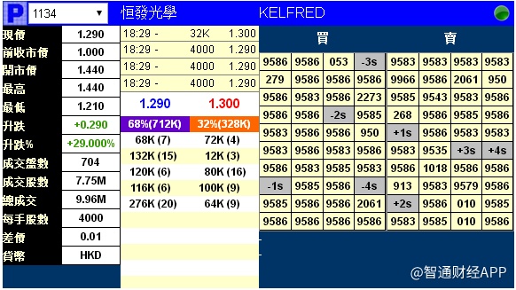 智通财经APP获悉,恒发光学控股有限公司(01134)将于7月16日挂牌,上市前夕,辉立证券暗盘交易显示其收报1.29港元,较招股价1.00港元涨29%。每手4000股,不计手续费,每手赚1160港元。