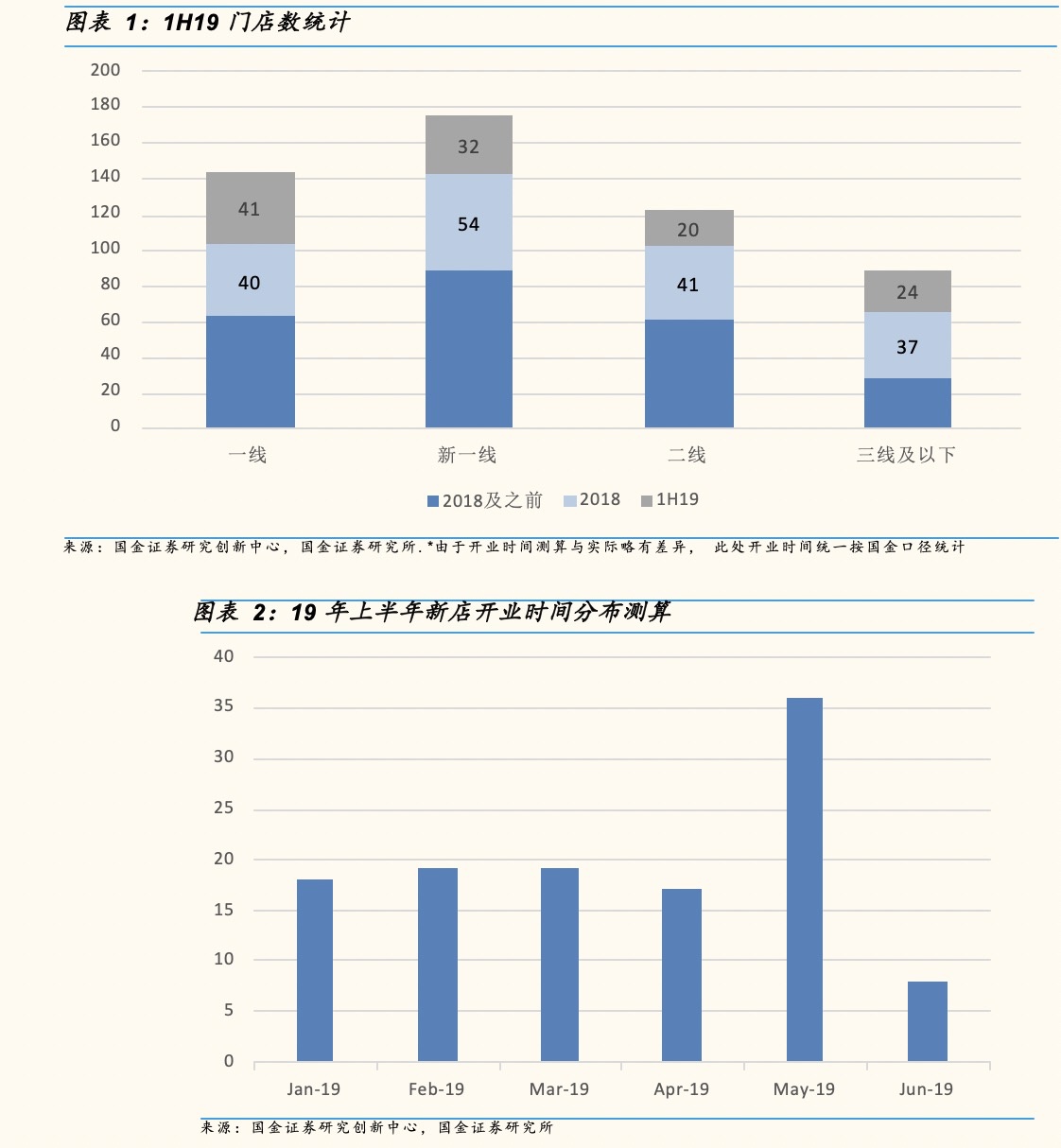我们认为今年加速开店的情况会继续,结合18年开店的分布以及今年上半年的开店情况,我们预测19-21年新开店250家/123 家/69 家。