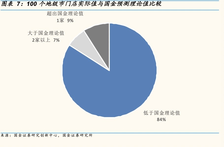 举例而言,对比我们之前在首次覆盖报告中提出的不同线城市门店理论天花板值,目前深圳、广州、长沙、郑州、西安、成都等城市门店超出我们预测的门店数2家以上。除了人口持续流入等一些宏观层面的因素外,我们在这些城市门店模型假设上都是按照大店假设,但实际新增门店则是以小店居多。因此,门店数量与客流量乃至营业收入之间的假设关系需要随着公司开店策略的变化进行修正。