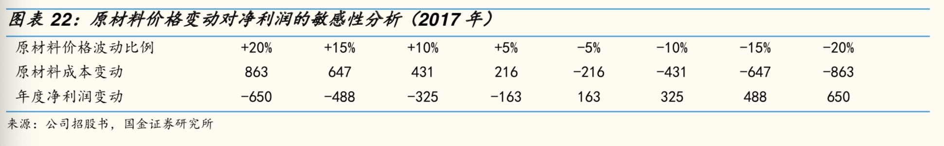 3)原材料成本大幅波动。原材料及耗材是公司业务最大的成本项,过去三年占比 40-45%。从图表19的敏感性分析可以看出,原材料价格上涨 5%将影响 2017年净利润1.6 亿元,占比达15.9%。考虑到公司原材料多为肉制品、水果鲜蔬等农产品,价格较为波动,因此对公司的利润影响也会较为显著。