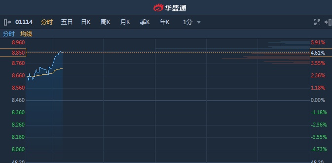 港股异动︱将举行董事会会议或派特别息 华晨中国(01114)现涨4.6%