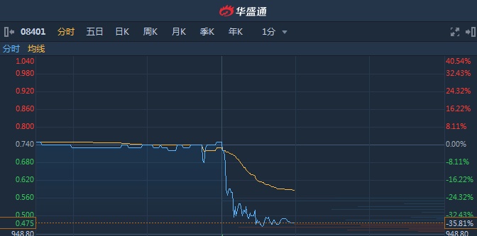 智通财经APP获悉,源想集团(08401)午后急挫逾35%,低见0.455港元,创历史新低。截至13时57分,跌35.81%,报价0.475港元,成交额1640万。