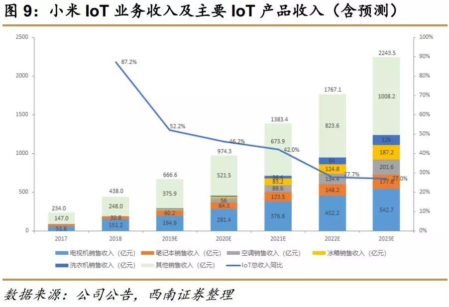 我们认为未来小米互联网服务变现的潜力将主要来自两个方面:一是以智能电视和小米盒子为代表的IoT产品带来的互联网服务变现潜力;二是小米海外互联网服务巨大的变现潜力。