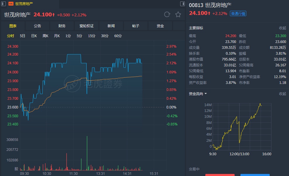 该行表示,世房中期业绩表现有望优于同业,每股盈利或按年增长30%,而毛利率等则按年持平。该行又预测世房财务表现改善,净负债率料约为65%,每股派息或按年增长20%,派息比率约为30%。该行展望公司今年下半年合约销售额年增长50%,有望优于同业平均31%水平,相信公司可以完成全年销售目标。