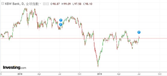 全球投资者在避险,如费城KBW银行指数(KBE)仍未突破下降轨道,此处必须小心银行指数作为领先指标,可能正预示企业借贷周期减速,触发信用周期回落的前瞻倾向。全球不同地区的股市都出现防御股不断上升的现象,例如香港的恒生指数公用股指数,及美国公用股ETF(XLU.US)都不断创新高,反映投资者对股市的走势仍然没有完全放心。另外,全球负利率债券规模达到12.9万亿美元,创历史新高。