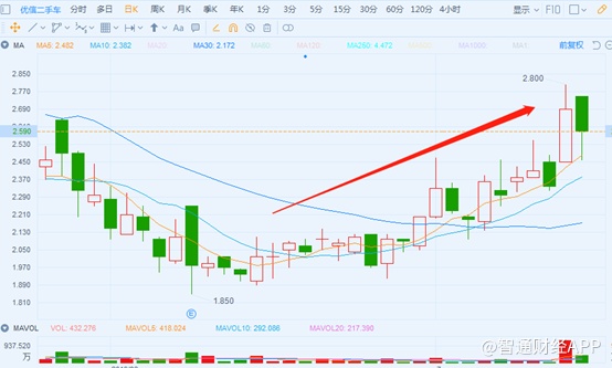 实际上,智通财经APP注意到,在这之前的一个月内,受到优信Q1业绩的利好刺激以及纳指的回暖,优信的股价稳步上涨了超过30个点,公告则将股价进一步抬升。