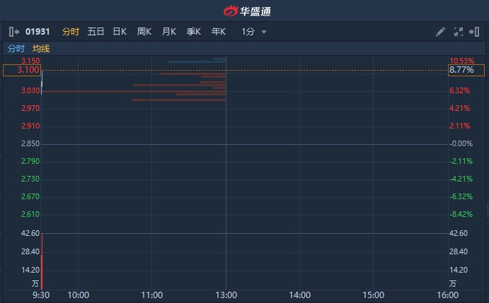 智通财经APP获悉,次新股华检医疗(01931)早盘高开高走,截至9时31分,涨8.77%,报3.1港元,成交额达212.1万港元。