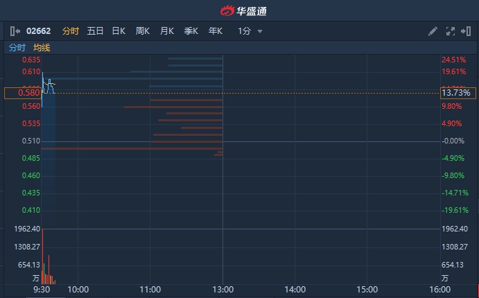 智通财经APP获悉,承兴国际控股(02662)早盘跳空高开高走,显著反弹。截至9时40分,涨13.73%,报0.58港元,成交额达3755万港元。