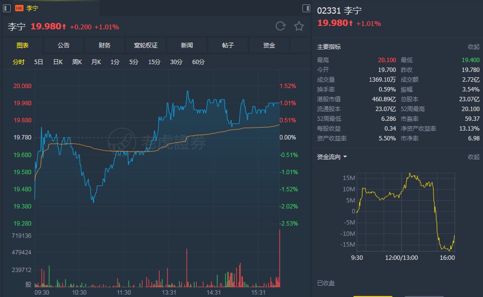 该行指出,迎合“国潮”趋势,中国李宁已成为一个备受追捧的品牌,但仍缺乏管理高端品牌经验,故限制持续增长。公司的经营利润自2014年起已有改善,预期可由2018年的7%升至2020年的10%,接近国际运动品牌的12%,相信公司未来的经营溢利增长会放慢。