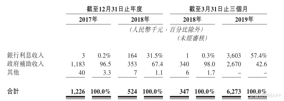 而截至2019年3月31日止三个月,康宁杰瑞获得的其他收入较过去两年有明显的增加,达627.3万元,,其中银行利息收入为360.3万元,占比57.4%;政府补助收入为267万元,占比42.6%,这部分补贴主要用于澳洲的临床试验。