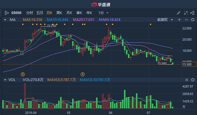 智通财经APP获悉,金山软件(03888)昨日大跌近6%,今日早盘再度低开低走,现已失守全部均线。截至10时3分,跌4.11%,报15.4港元,成交额达7189万港元。