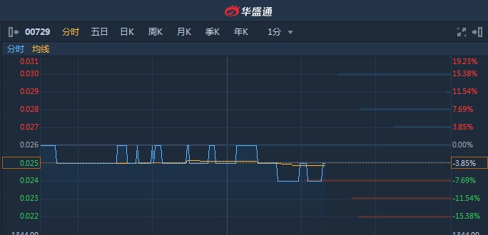 智通财经APP获悉,细价股五龙电动车(00729),盘中挫逾7%,低见0.024港元,创逾十年新低。截至14时16分,跌3.85%,报价0.025港元,成交额119.5万。