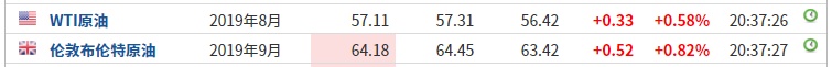 截至发稿,WTI原油涨0.58%,报57.11美元/桶。布伦特原油涨0.82%,报64.18美元/桶。