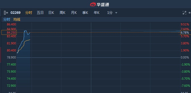 智通财经APP获悉,药明生物(02269)连涨五日,累计涨幅达17%。早盘涨势延续,快速拉升近7%。截至9时56分,涨6.78%,报价84.25港元,成交额1.656亿。